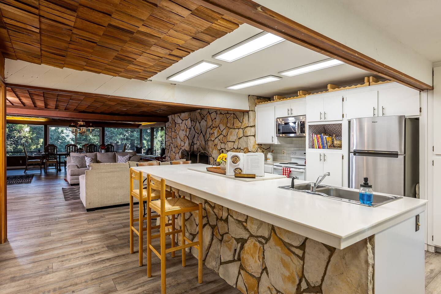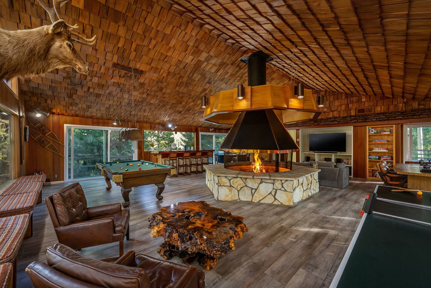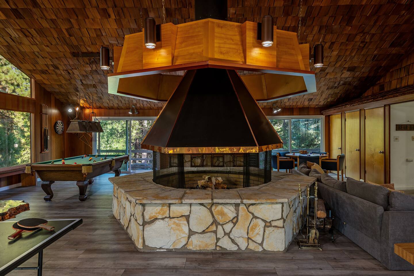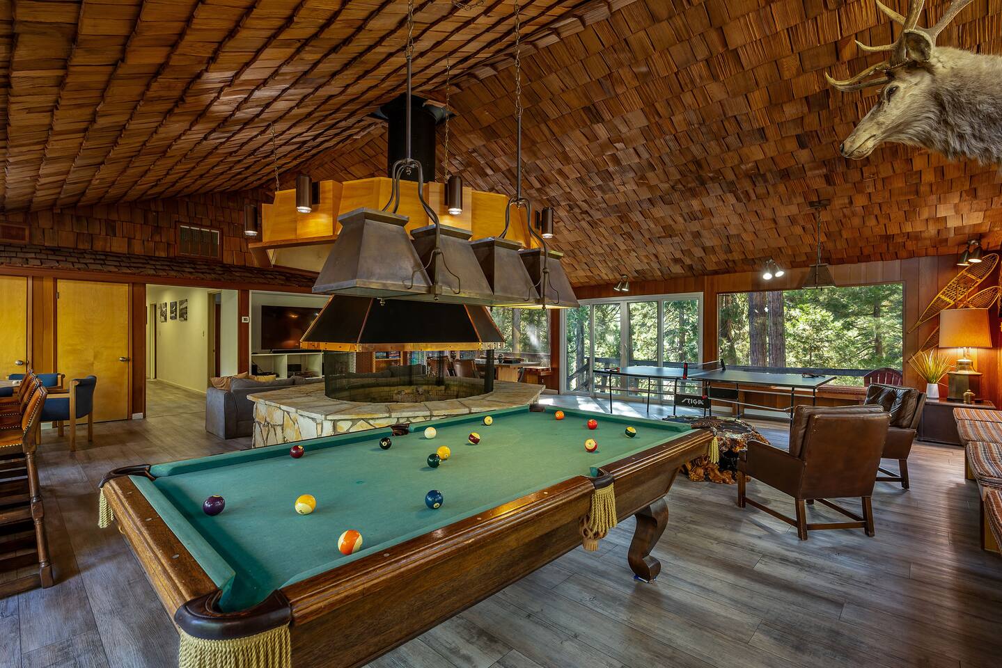 This home is located in Sequoia National Forest, an area that is known for some of the largest trees in the world, creeks and rivers great for a swim or fishing, and several hiking trails. This is a dog-friendly home as long as your dog is 12+ months, well trained, and housebroken. Guests staying at this modern mountain home have exclusive access to numerous amenities. Take time to enjoy the gorgeous views from the private viewing deck and play pool, ping pong, poker, or enjoy a cocktail at the private bar in the game room. There are multiple HDTVs in the home, along with an entertainment systems. You are welcome to use the laundry area, as well as the workspace. The home has free parking for up to 5 vehicles available on the premises. Self-Check In is available. The code will be sent to you before your check in. There is a 2 bedroom cabin at the back of the property that is occupied by long term tenants. They will not disturb your stay but you may see them using the shared driveway access.