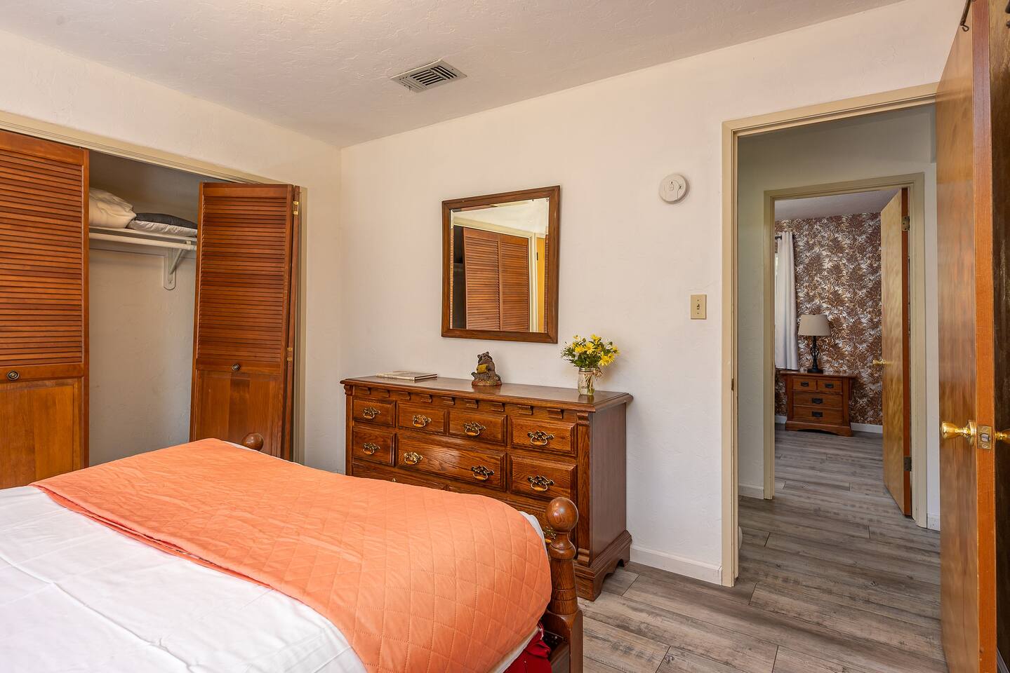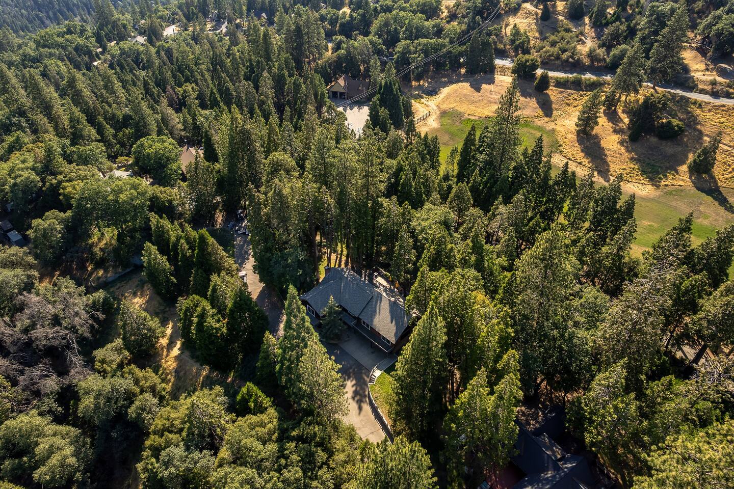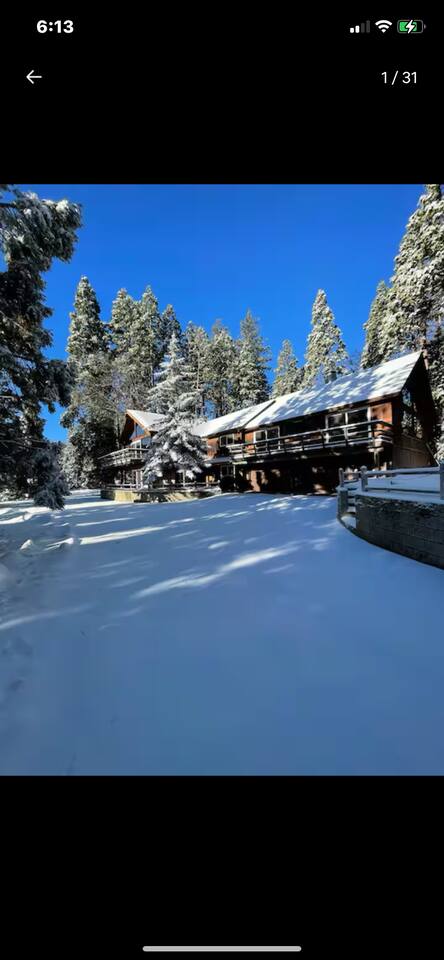 Key Features Include: -Stunning Mountain Views -4,400SF suitable for large groups -5 Bedrooms (2 King Beds, 3 Queen Beds, and 4 bunk beds) -3 Bathrooms including Soaker Tub -Game Room -2 Fireplaces -Pool Table -Ping Pong Table -Dart Board -Board Games -Card Games -Private Wet Bar -Record Player -Pet Friendly -Private and Secluded Location -Deer Sightings in the back yard -Fully Stocked Kitchen with 2 Fridges -Outdoor Games including Cornhole -Fans in all bedrooms -Small Waterfall and Pond with Adirondack Chairs -Outdoor BBQ and Picnic Table -High Speed Internet INSIDE SPACE This chalet style lodge boasts 5 bedrooms, 3 bathrooms, and almost 4,400 square feet of living space for up to 14 guests to enjoy comfortably (up to 16 guests max upon request). The mountain views can be seen from the expansive windows whether you’re tucked away enjoying a good book, dining with friends and family, or playing board games in the main living room. KITCHEN+DINING A dedicated coffee + tea bar will delight enthusiasts each morning and includes a drip and Keurig coffee maker. 2 Fridges and a large central island countertop provides plenty of cook space. A wooden dining table sits next to the main living room and provides seating for 8 with space to add 2 additional chairs. BEDROOMS There are a total of 5 bedrooms within the cabin. 2 bedrooms are located on the main level, one with a king bed and the other with 1 queen bed and 2 sets of bunk beds. The private master bedroom suite is on the top floor and contains a king size bed. Two additional bedrooms are located upstairs with queen size beds. Each bedroom has full size closets and hangers for clothing storage. BATHROOMS There are three full bathrooms, each of them stocked with all the essentials you need for the duration of your stay. The master bedroom on the top floor contains an ensuite bathroom, while one full bathroom is located just across the hallway and easily accessible for the guests staying on the main level. Worry about nothing with these thoughtfully stocked bathrooms that provide everything you need and more. BONUS ROOMS Dedicated workspaces in the bedroom. Entertainment level includes a wet bar, pool table, ping pong table, dart board, board games, arcade games, and Smart TV. OUTSIDE SPACE Walk out from the living and dining room onto the back deck where you can enjoy a stainless steel grill, picnic table, full size corn hole, and fire pit. Over 2 acres of oak trees, ponderosa pine trees, cedar pine trees.