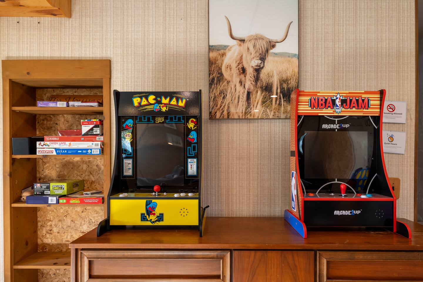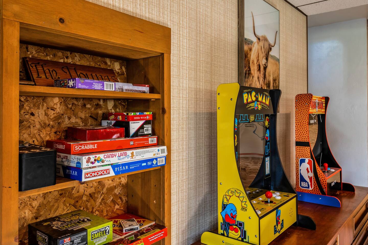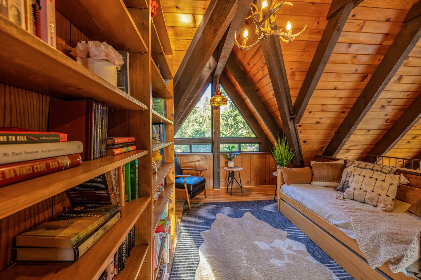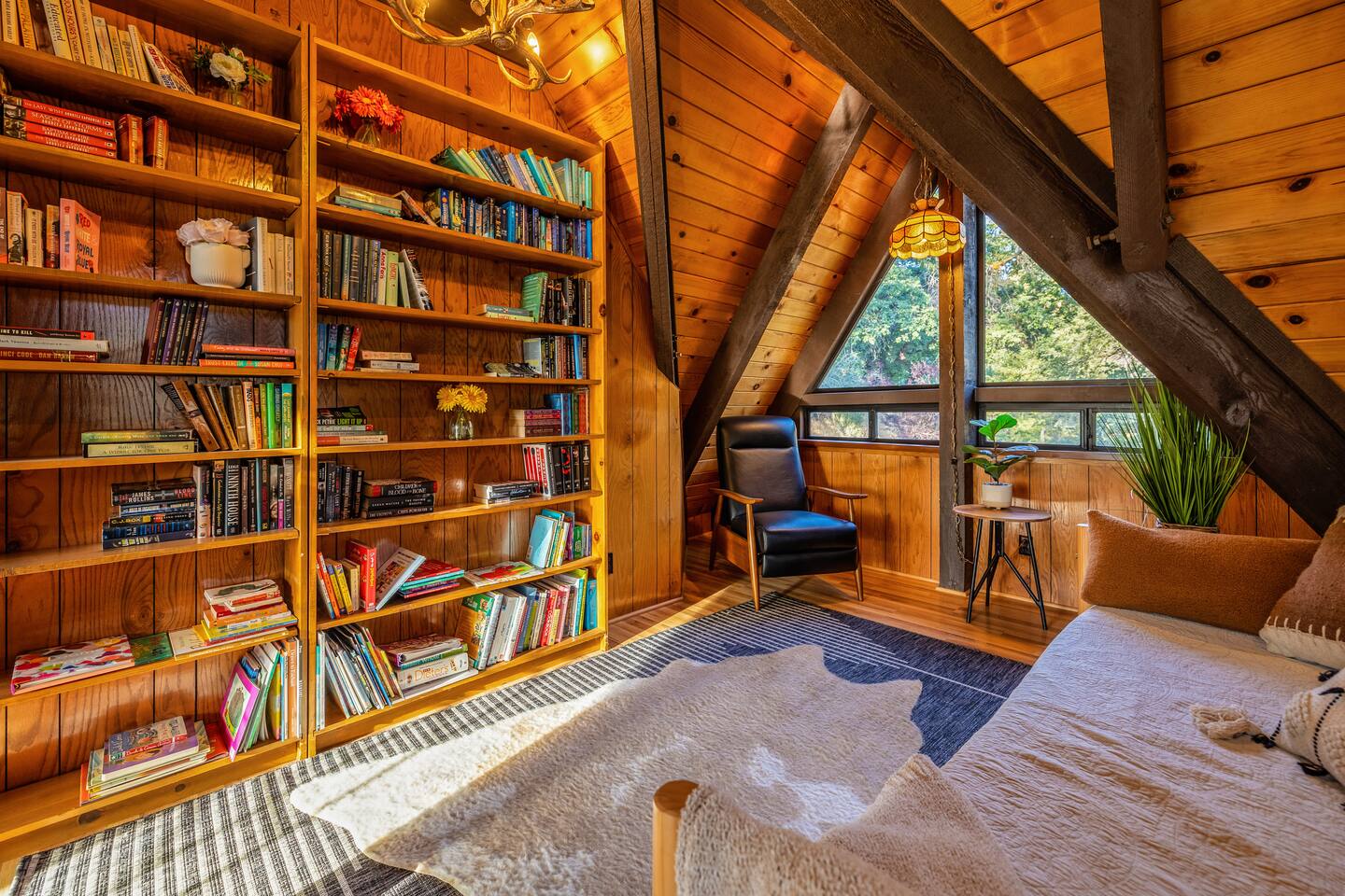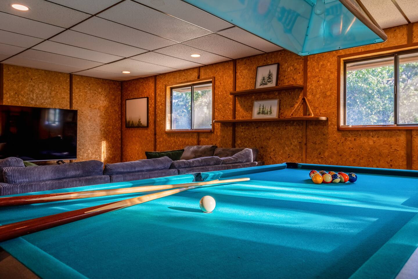 Key Features Include: -Stunning Mountain Views -3,000 SF suitable for large groups -Hot Tub -Pet Friendly -EV Charger Level 2 (Up to 30 miles per hour) -Private and Secluded Location -Easy access off main highway CA-190 -Deer Sightings in the back yard -Library Loft with Books and Record Player -Game Room with Arcade Games -Pool Table and Darts with Wet Bar -Board and Card Games -Fully Stocked Kitchen with Stainless Steel Appliances -Hammock on the deck amongst the trees -Outdoor Games including Cornhole -Fans in all bedrooms and portable AC for master bedroom available in summer -High Speed Internet WHAT GUESTS HAVE TO SAY "This cabin was amazing! It was exactly how it looked like in the pictures, loved how quiet it was and we had so much fun with the game room. " "Chris’s place was one of the best locations that we’ve been to. It’s peaceful and quiet. The locals are friendly. There are many locations around the Airbnb to explore such as the Stagg Tree and Coffee Camp which are both part of Chris’s recommendations. Overall, it’s a great place and Chris is a great host and this place is definitely worth visiting" "This is a beautiful cabin and the Mountain View’s were gorgeous. We would wake up to deer in the backyard and birds chirping with a fresh mountain breeze. The locals at the grill down the street were amazing and the food was amazing. " INSIDE SPACE This A-frame style cabin boasts 3 bedrooms, 3 bathrooms, and almost 3,000 square feet of living space for up to 10 guests to enjoy comfortably (up to 12 guests max upon request). The mountain views can be seen from the expansive windows whether you’re tucked away in the loft enjoying a good book, dining with friends and family by the wood-burning stove, or playing board games in the main living room. KITCHEN+DINING A dedicated coffee + tea bar will delight enthusiasts each morning and includes a drip coffee maker, coffee grinder, and French press coffee maker. New Stainless Steel appliances are provided as well as smaller appliances like a blender, waffle maker, and 4-slice toaster! A wooden dining table sits next to the wood burning stove and provides seating for 6 with space to add 2 additional chairs. BEDROOMS There are a total of 3 bedrooms within the cabin. 2 bedrooms are located on the main level, one with a queen bed and the other with 2 full size beds. The private master bedroom suite is on the top floor and contains a king size bed as well as a crib for infants located in the closet. Each bedroom has full size closets and hangers for clothing storage. Bedrooms all have new euro-plush hybrid mattresses, Parachute luxury bed linens, and Parachute duvet comforters. BATHROOMS There are two full bathrooms and one half bathroom in this home, each of them stocked with all the essentials you need for the duration of your stay. The master bedroom on the top floor contains an ensuite bathroom, while one full bathroom is located just across the hallway and easily accessible for the guests staying on the main level. Worry about nothing with these thoughtfully stocked bathrooms that provide everything you need and more. BONUS ROOMS Dedicated workspaces in Master Suite and in Loft. Entertainment level includes a wet bar, pool table, dart board, board games, arcade games, and theater space with 75” Smart TV. FAMILY FRIENDLY Kid-Friendly amenities include activity closet, kid friendly books and board games, life size Connect 4, PS4 video game console, retro arcade games, kid size plates and cups, a play pen, a crib, and a high chair. OUTSIDE SPACE Walk out from the living and dining room onto the back deck where you can enjoy a stainless steel grill, hammock, sectional sofa, full size corn hole, and fire pit. Additional backyard amenities include a hot tub facing Slate Mountain and a tree swing on the largest oak tree. Over 1 acre of oak trees, ponderosa pine trees, cedar pine trees, and a private vegetable garden are yours to explore.