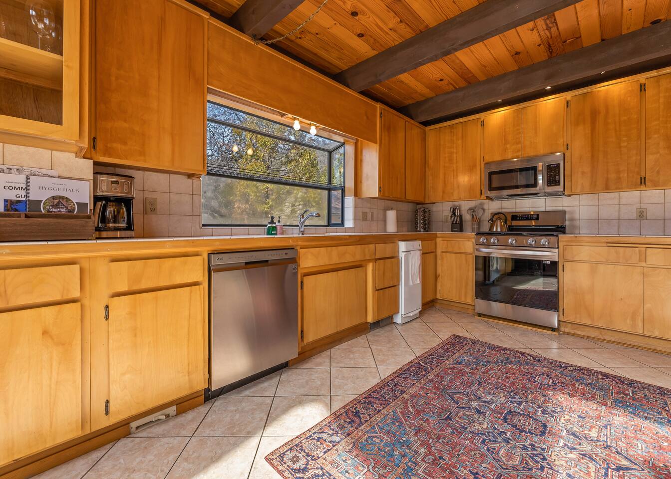 This home is located in Sequoia National Forest, an area that is known for some of the largest trees in the world, creeks and rivers great for a swim or fishing, and several hiking trails. This is a dog-friendly home as long as your dog is 12+ months, well trained, and housebroken. Guests staying at this modern mountain A-frame home have exclusive access to numerous amenities. Take time to enjoy the gorgeous views from the private viewing deck and use your own personal hot tub at your leisure. There are multiple HDTVs in the home, along with an entertainment system powered by Roku. You are welcome to use the laundry area, as well as the workspace. The home is fitted with a smart door lock and free parking for vehicles is available on the premises, with additional street parking. Self-Check In via the smart lock on the door adjacent to the garage. The code will be sent to you before your check in.