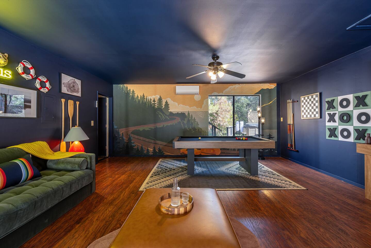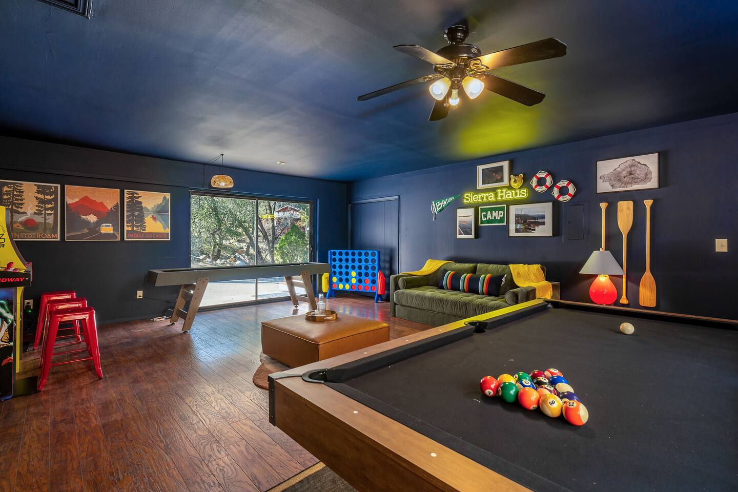 This home is nestled in the peaceful hills near Sequoia National Park, surrounded by towering oak and pine trees. The area is known for its scenic hiking trails, wildlife viewing, and tranquil forest atmosphere — the perfect spot to unwind and reconnect with nature. Guests staying at this stylish mountain retreat have exclusive access to all interior and exterior spaces, including the spacious living and dining areas, two full bathrooms, and a fully equipped kitchen. Step out onto the balcony to enjoy a friendly game of cornhole or simply take in the serene forest views. Inside, you’ll find plenty of ways to relax and play — from the pool table and arcade games to the Smart TV and cozy seating areas. Dedicated workspaces in the bedrooms make it easy to stay productive while enjoying your getaway. Guests also have access to free on-site parking for up to 5 vehicles and self check-in via a secure smart lock. Check-in instructions and the access code will be sent prior to your arrival.
