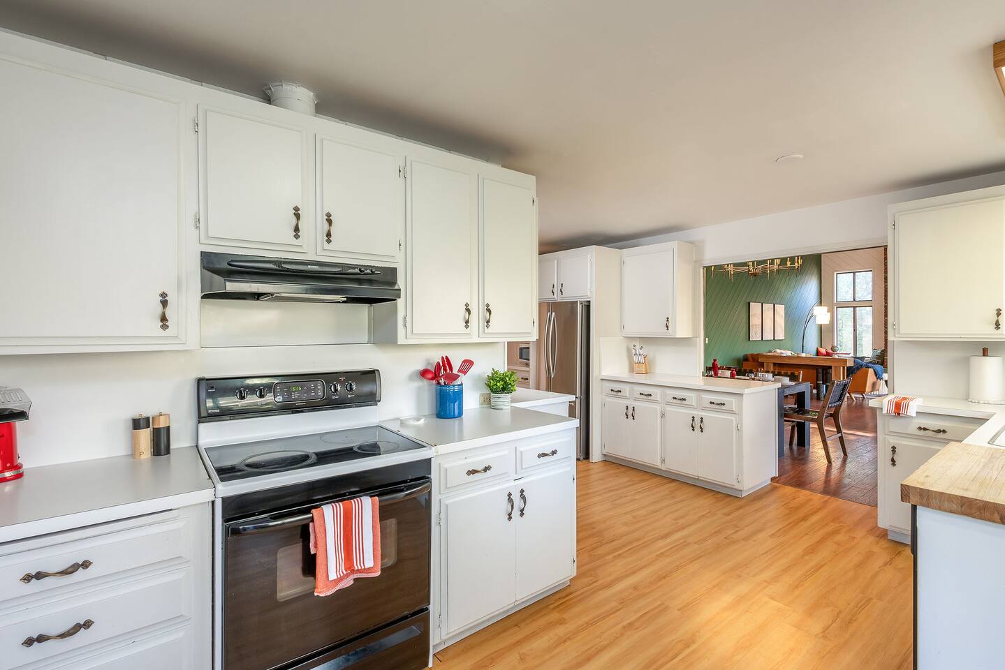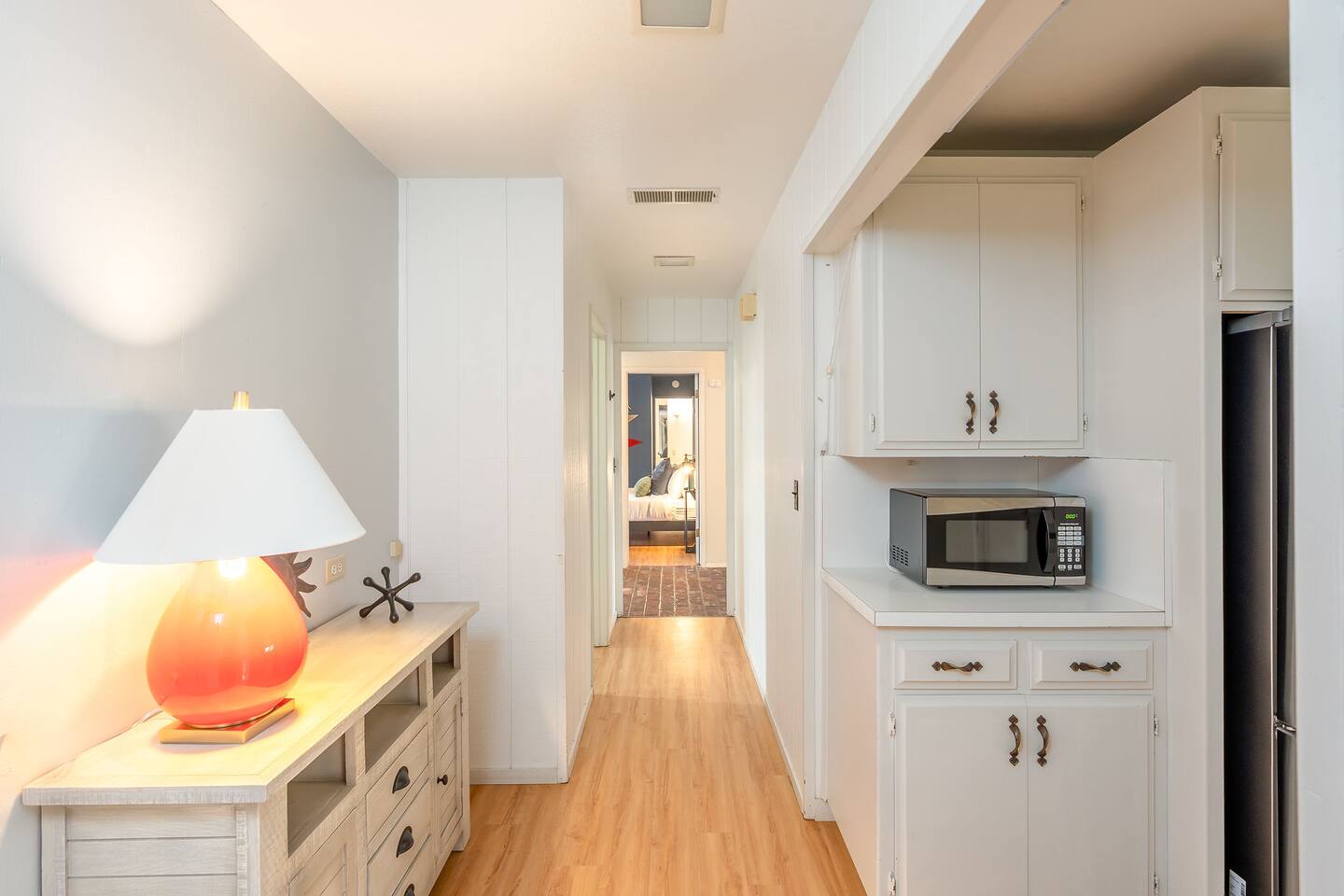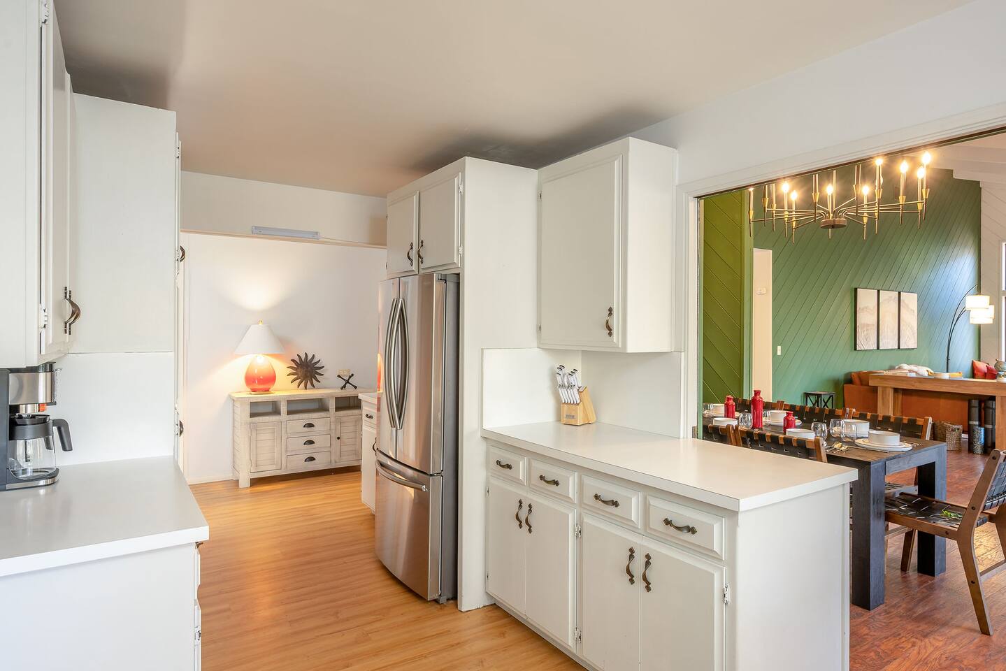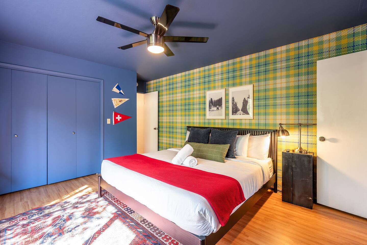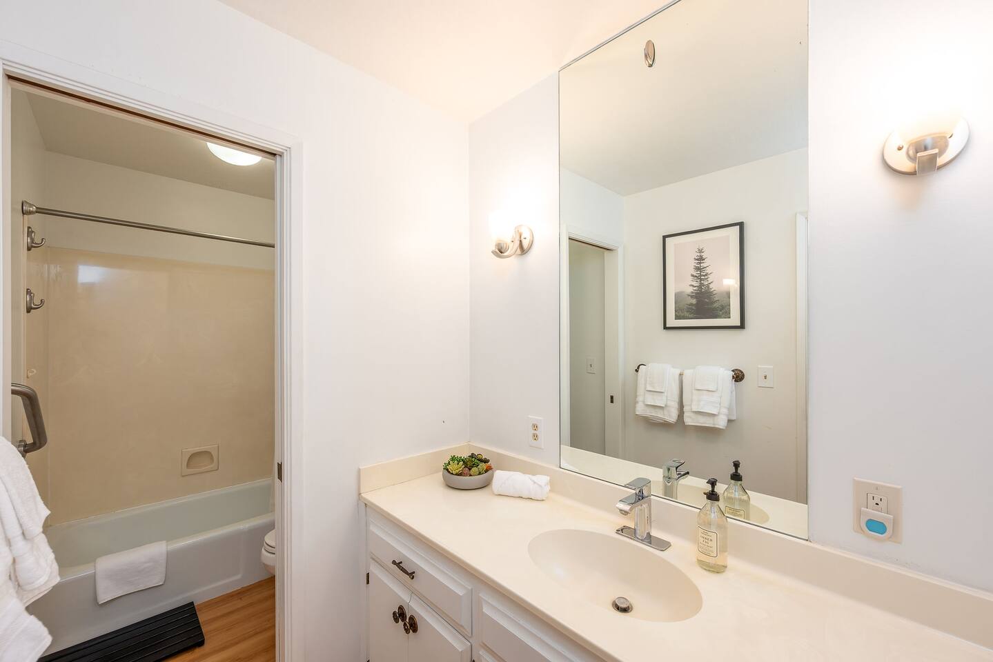 YOUR PROPERTY This beautiful home offers the perfect balance of style, comfort, and functionality. Two spacious bedrooms, two full bathrooms, and a half bath ensure plenty of space for everyone. Each bathroom is thoughtfully stocked with essentials, so you can relax and focus on enjoying your stay. KITCHEN & DINING The full kitchen is fully equipped with modern appliances, ample counter space, and everything you need to prepare meals with ease. Just off the kitchen, the dining area features a large table set beneath a modern chandelier, accented by striking green walls and Sequoia National Park artwork — the perfect backdrop for shared meals and conversation. BEDROOMS & BATHROOMS Each bedroom offers a cozy retreat designed for comfort. Bedroom 1 features warm tones and a spacious layout, while Bedroom 2 adds a vibrant, modern flair with bold design and direct access to nearby amenities. Both full bathrooms are bright and spacious, offering large vanities and clean finishes. The additional half bathroom adds extra convenience for guests. BONUS ROOMS Enjoy dedicated workspaces in the bedrooms and an entertainment area with a pool table, dartboard, arcade games, and Smart TV. Whether you’re working remotely or unwinding after a day of exploring, this home has you covered. OUTSIDE SPACE Step onto the spacious back deck where you can enjoy a full-size cornhole setup, outdoor seating, and peaceful views of the surrounding oak and pine trees. With over 2 acres of natural landscape, you’ll often spot local wildlife — including wild turkeys strolling through the property.
